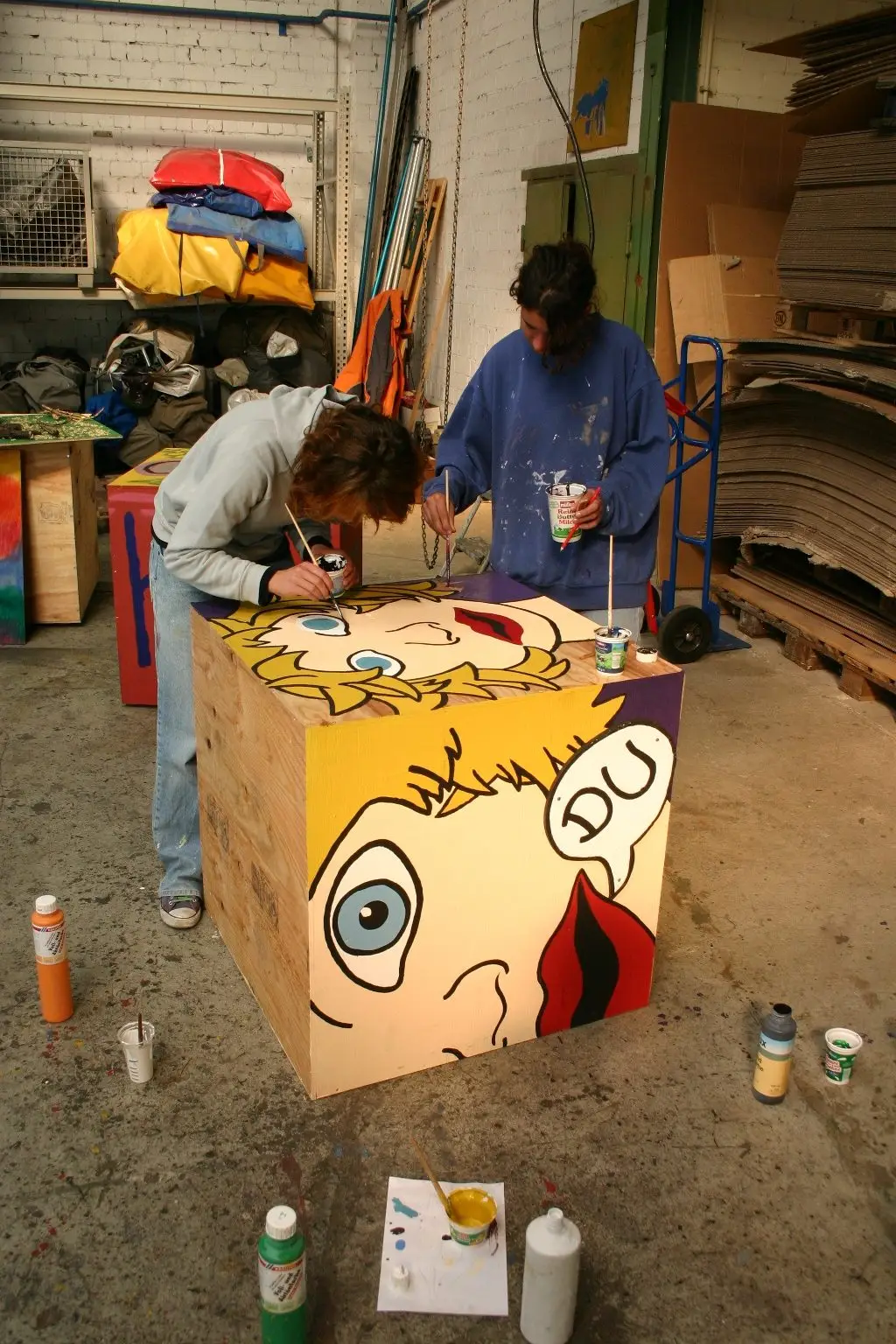 Jugendliche gestalten 400 Würfel zum Stadtjubiläum.